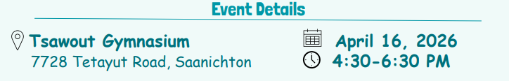 Please join the Saanich School District for an afternoon of fun for Pre-School aged children.